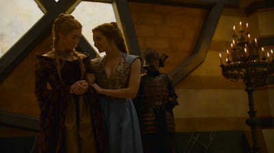 E Cersei vince la coppa del nonno come miglior protagonista della puntata. Se mi chiami di nuovo sorella ti faccio strangolare nel sonno. Che a quella puttanella di Margaery Tyrell c'è da darle una ridimensionata e quale modo migliore se non narrare le gesta del temibilissimo Tywin Lannister che impala donne e bambini e paraplegici che hanno pisciato fuori dal vaso? Ah, quanta dolcezza esce dalle labbra della regina reggente e ce n'è anche per il ricchioncello di casa Tyrell: A nessuno interessa cosa ti disse tuo padre. Immensa Cersei. Guadagna almeno 3 stelline simpatia quando si inciucca e inizia a sputare merda sul prossimo.